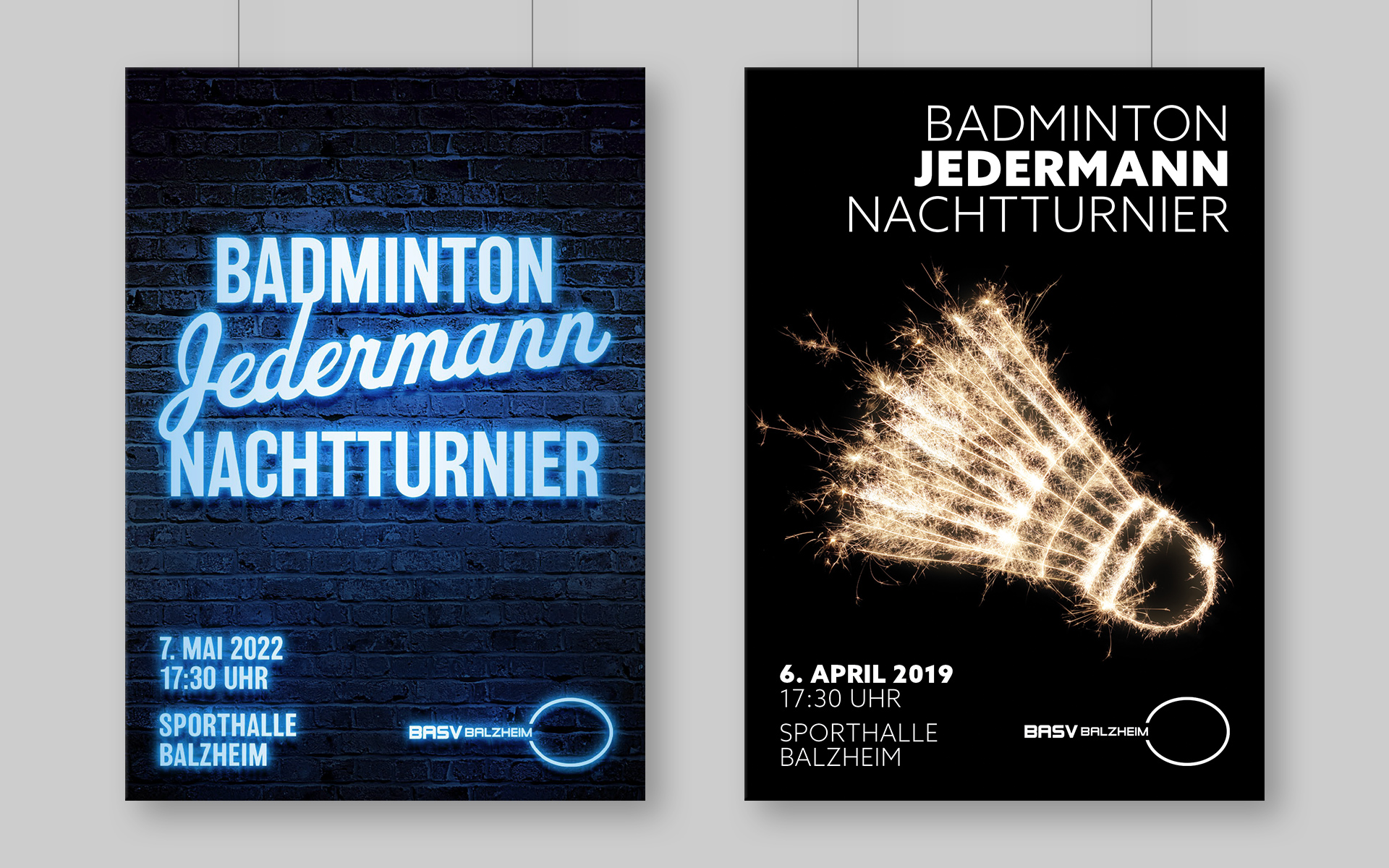 Als langjähriges Mitglied der Badmintonabteilung gestalte ich bereits seit mehreren Jahren die Werbung für das alljährliche Badminton Jedermann Nachtturnier. Dabei versuche ich jedes Jahr eine neue und ausgefallene Idee für das nächtliche Turnier umzusetzen. Viele Motive wurden dabei selbst fotografiert und retuschiert. Neben Plakaten und Flyern werben wir auch kräftig über diverse Social-Media-Kanäle.